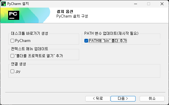 다운로드 폴더에서 위와 같은 "pycharm-2025.x.x.x.exe" 파일 실행 및 설치